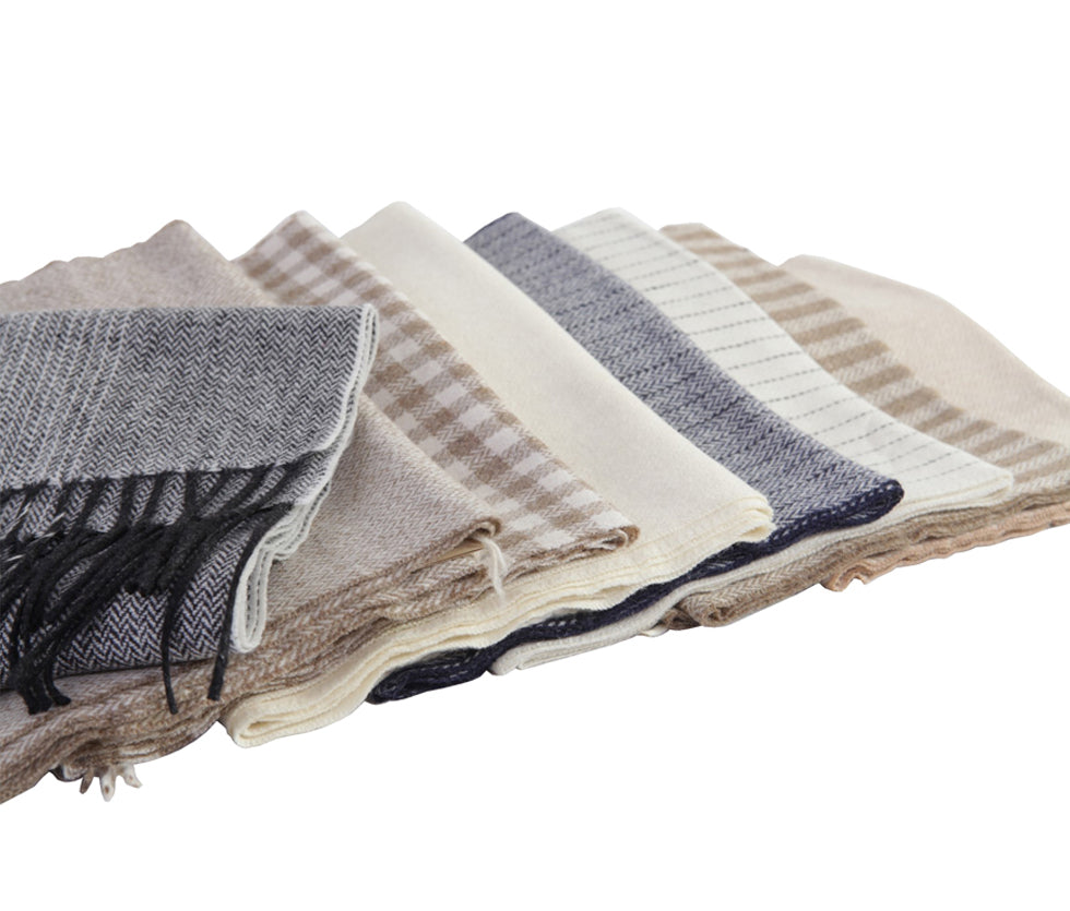 100% wool scarf. Different patterns based on natural colors of wool and native vegetation from the mountain. Beautiful fringe finish.